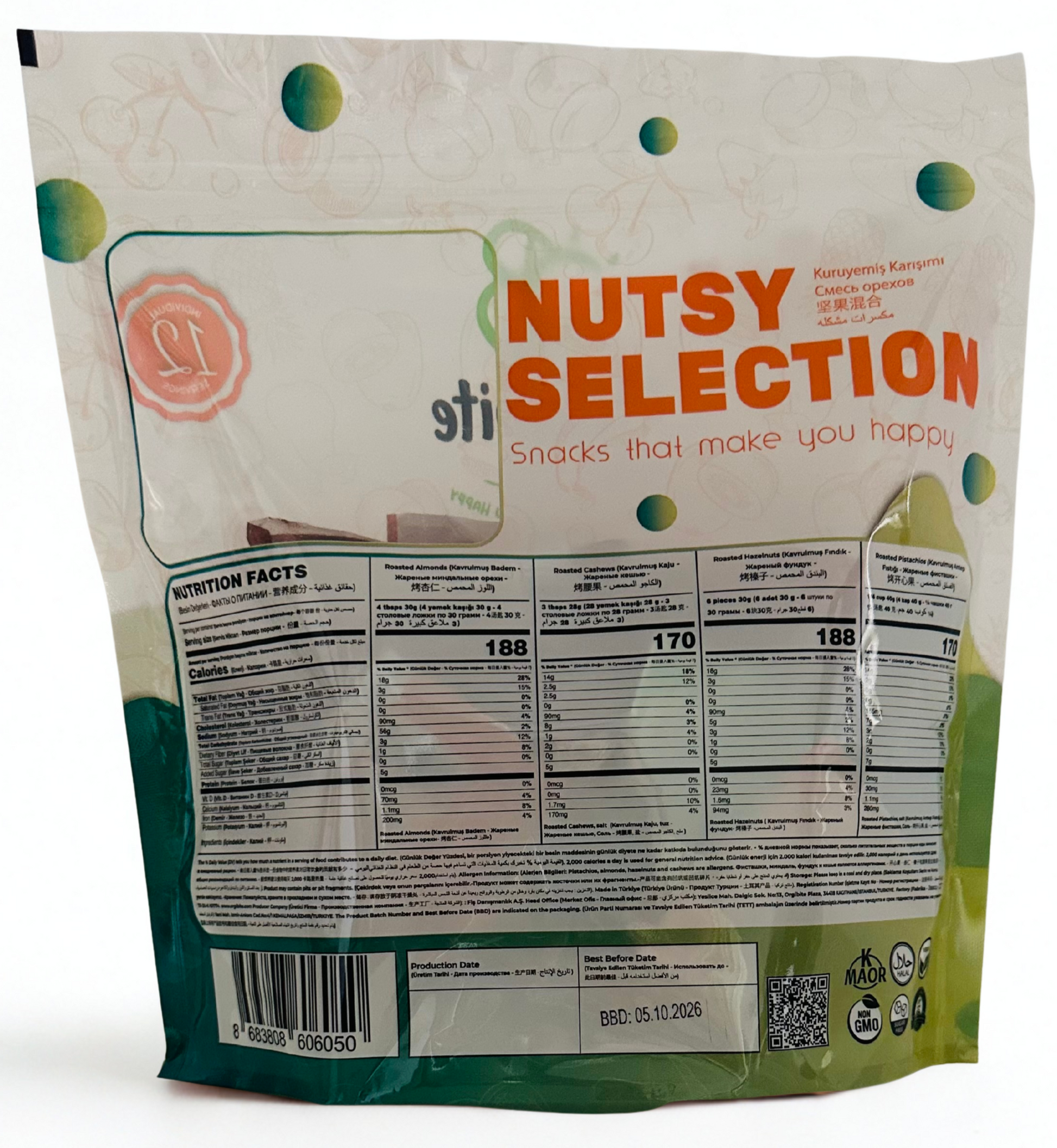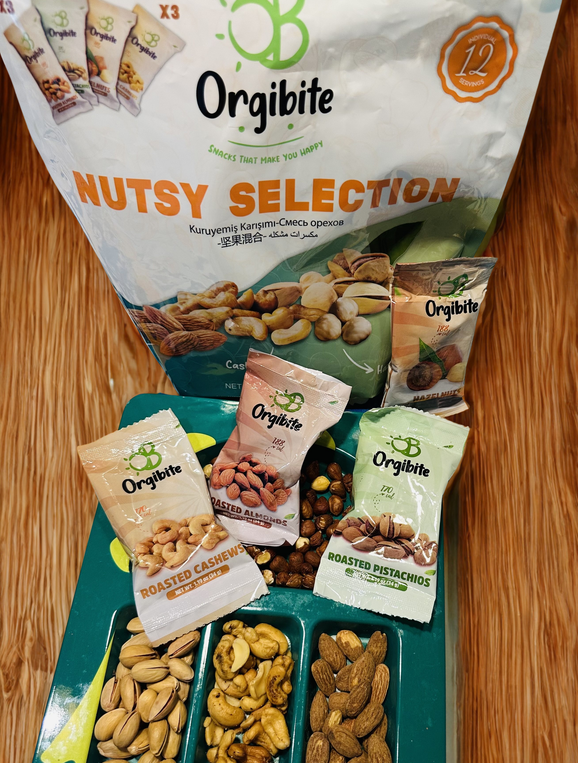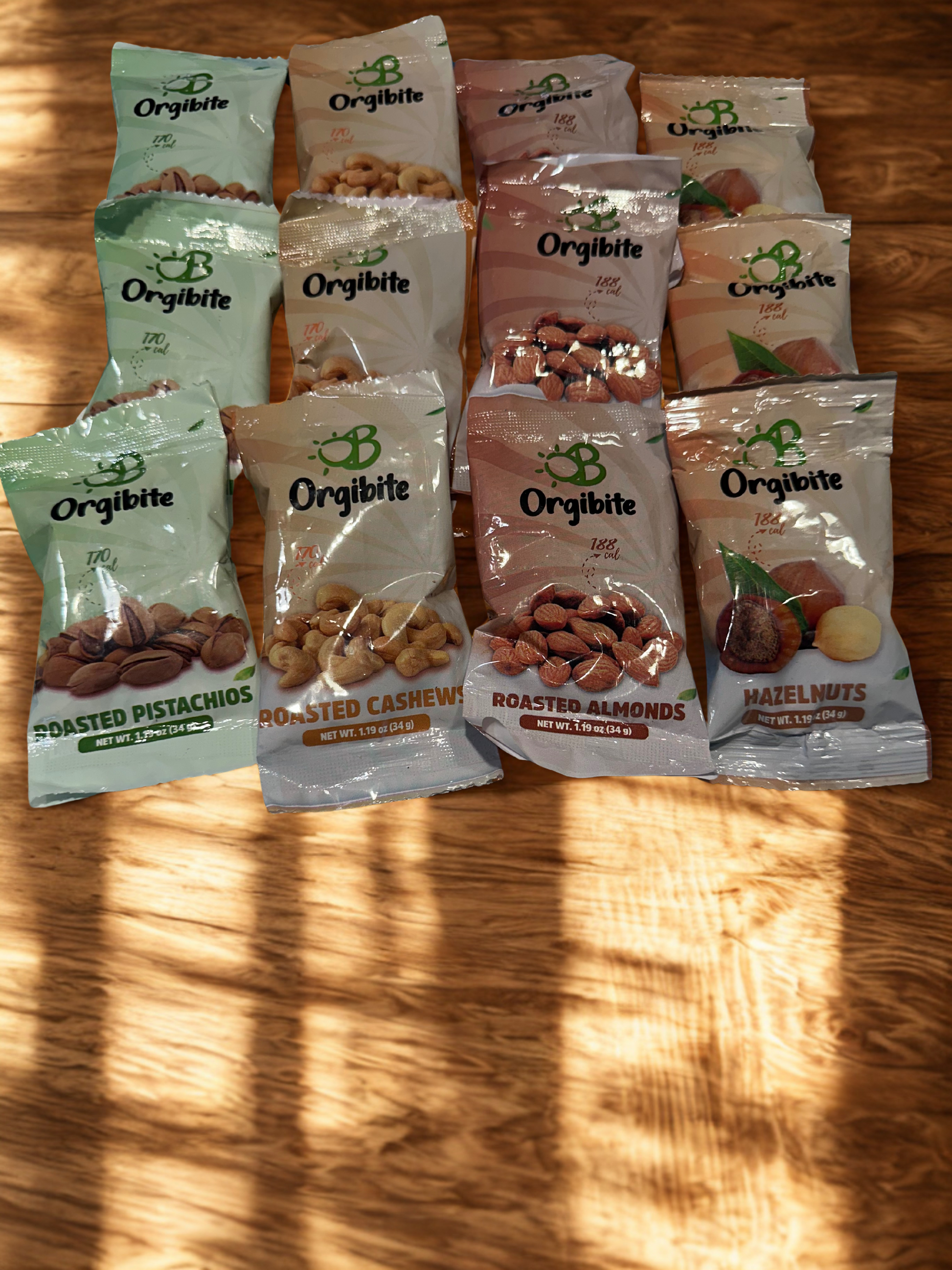 Orgibite Nutsy Selection 12-Pack Mixed Nuts - Almonds (3) Cashews (3) Pistachios (3) Hazelnuts (3)